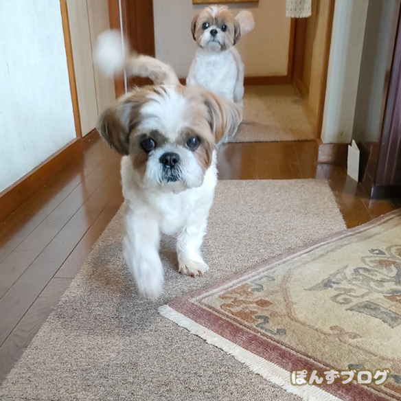 ぽんずとかぼすのもふもふ親子による、かけっこです。