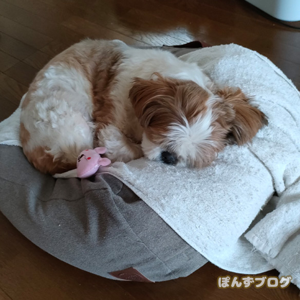 もふぅ、っとすごく気持ちよさそうに寝ているぽんずです。