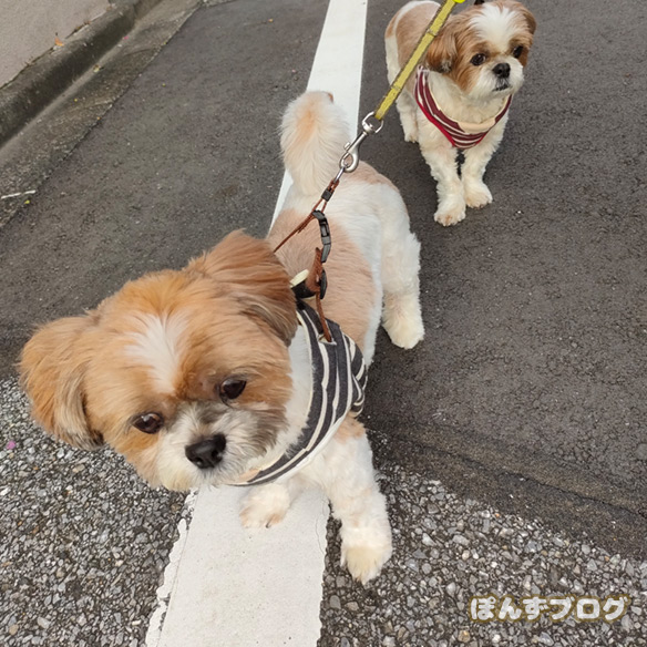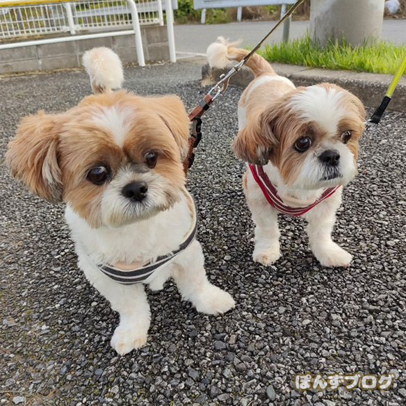 ぽんず母さんと散歩に行けて嬉しそうなかぼすでした。
