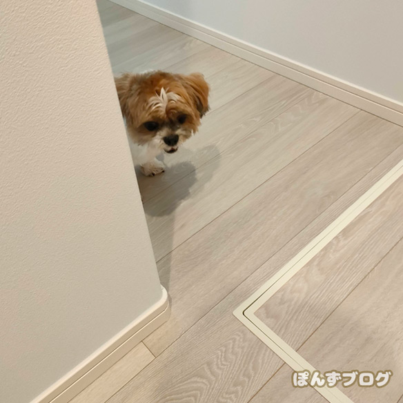 ぽんずと同じく、警戒気味にくんくんしながら部屋をうろうろするかぼす。