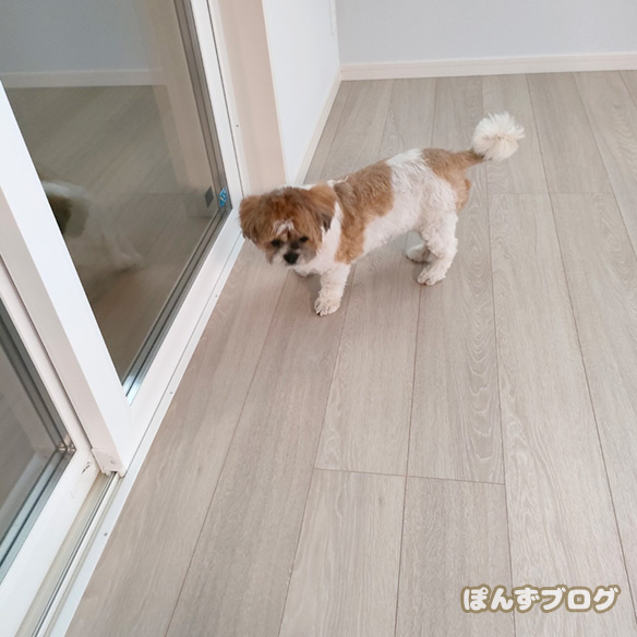 窓に映りこんだ自分の姿を見てわんわん吠えるかと思いましたが・・・