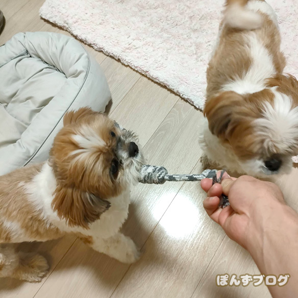 でも、ぽんずは家の中では遊ばないのかなというとそうでもなく・・・