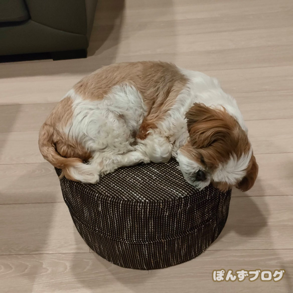 ちょっと高い所で寝るのが好きな、ぽんず。
