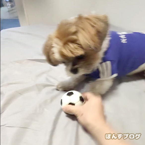 飼い主を相手に猛特訓していました。