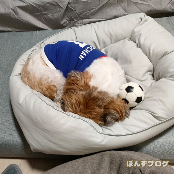 ハードワークの後は、ぐっすり寝に入るかぼす選手。