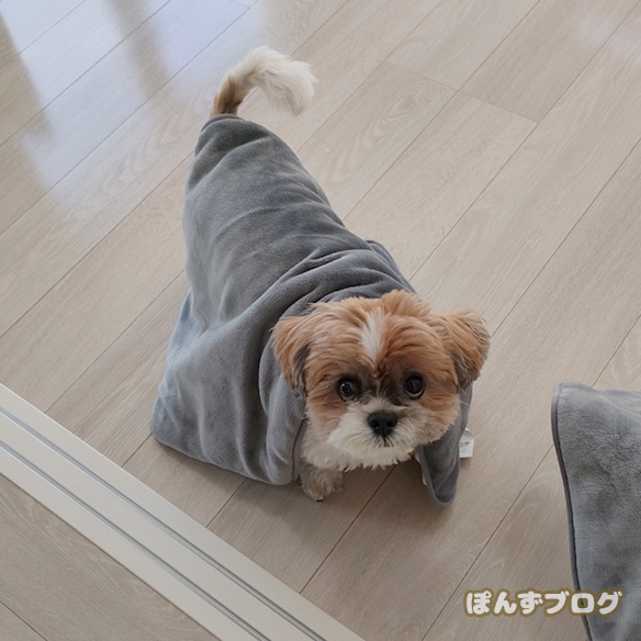 同じく、ブランケットをかけたまま