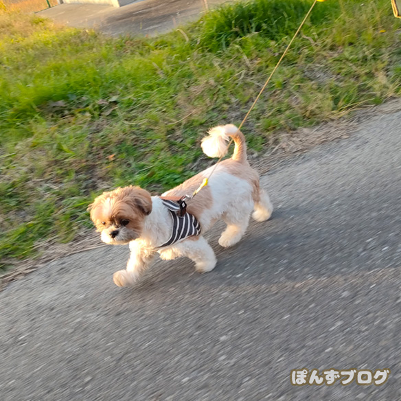 しっかりと歩くぽんずは、とっても健康的。