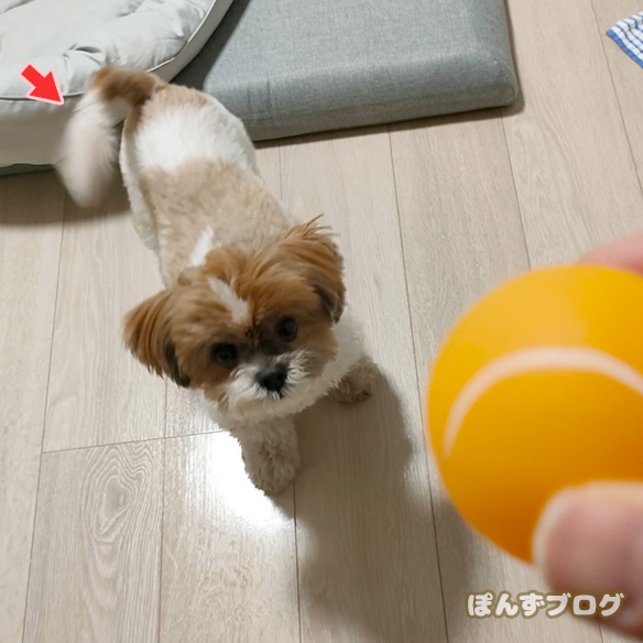 あまりしっぽを振らないのに、ぶんぶん振り回していました。