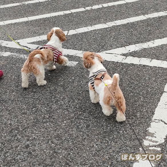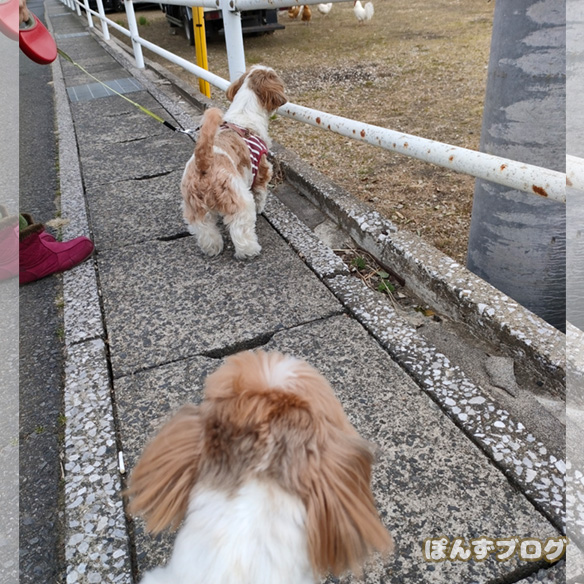 ぽんちゃん達、にわとりの刺激でお散歩のテンションが上がりましたね。