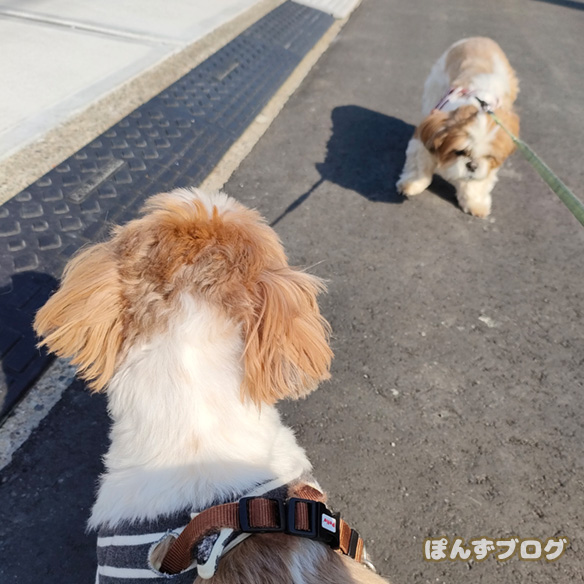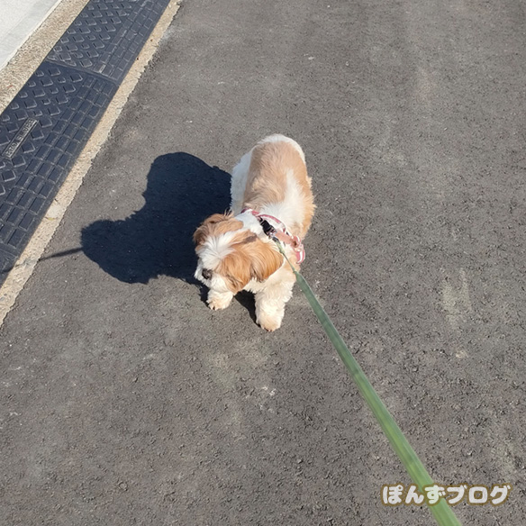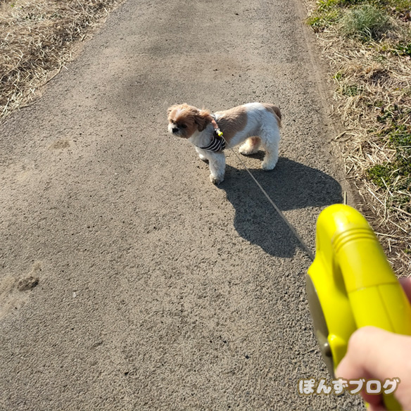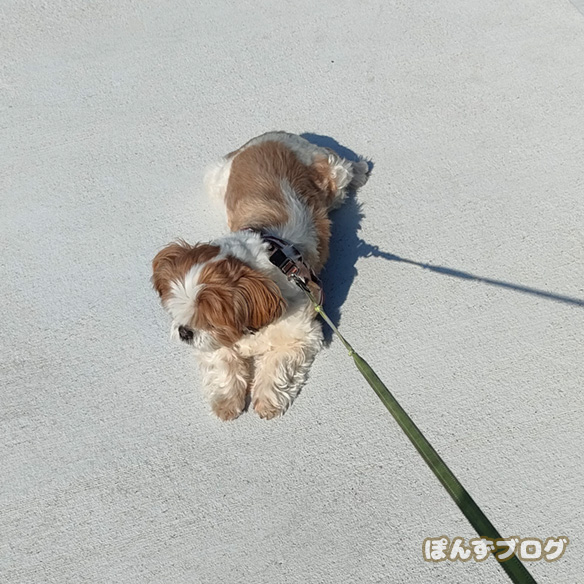 ぽんず、家から出た所でいきなりのストライキ。