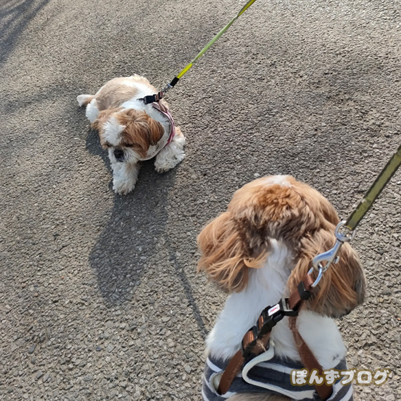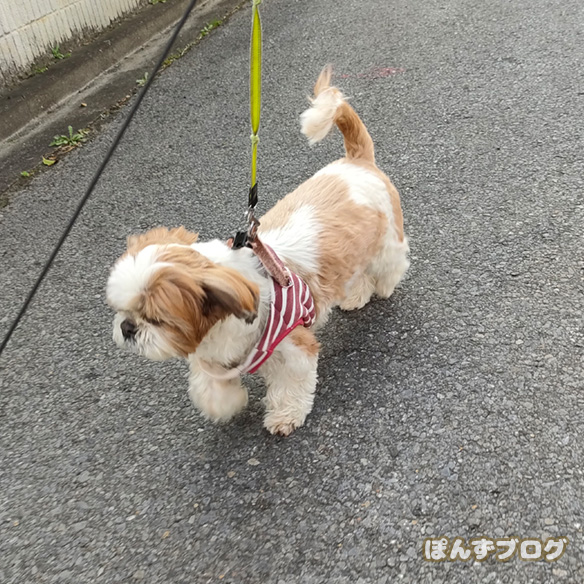 散歩では見事にやる気のなさそうなストライキを見せていたぽんず。