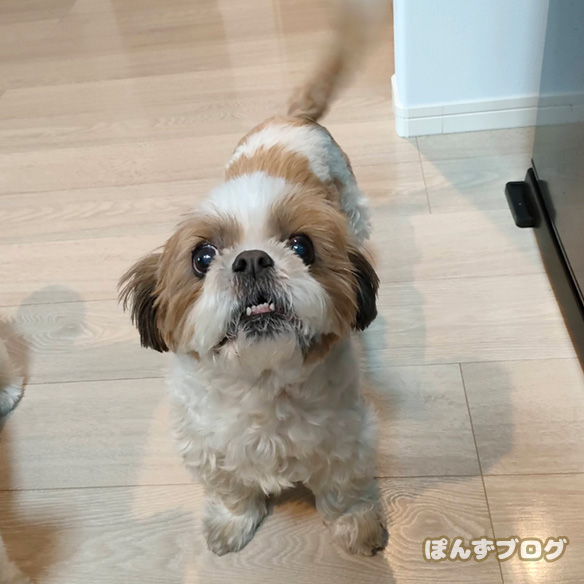 散歩後のおやつ要求では、すっかり別犬に。