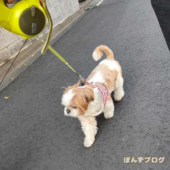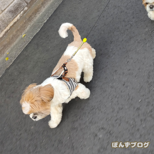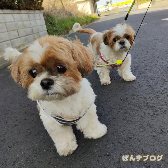 今日もぽかぽか陽気の中散歩にでかけた、ぽんずとかぼす。