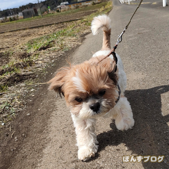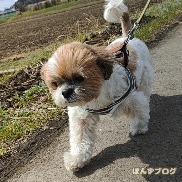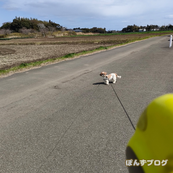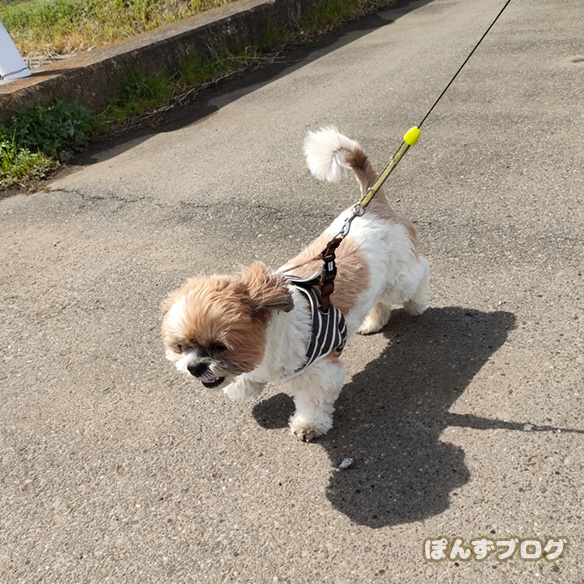 暑くなってきたから、ぽんずは夕方から行こうね~。