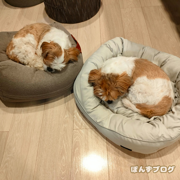 ぽんずとかぼす、仲良く寝ています。