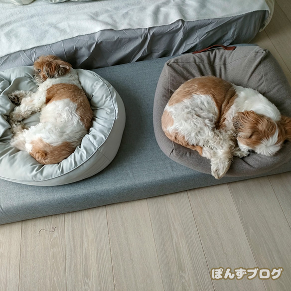 もふぅ、っと寝ているぽんずの横には・・・ かぼすが・・・あれ?いません。 珍しく、別々の部屋で寝ていました。 今日も晴れていたので、散歩に連れてい...