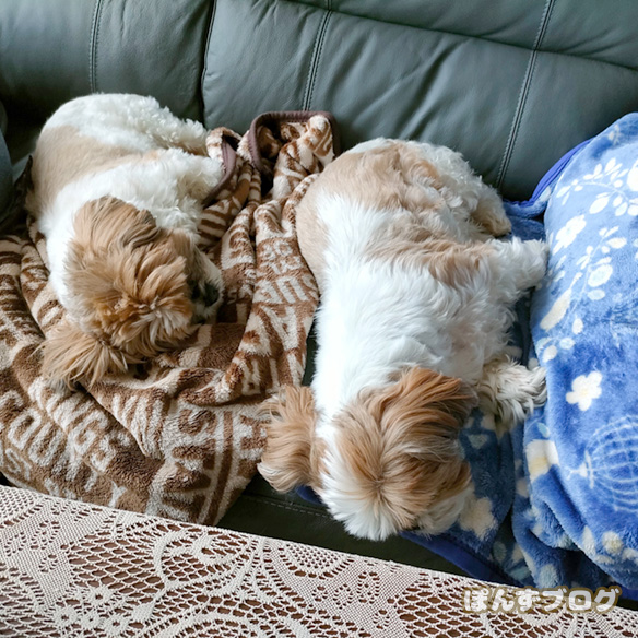 突然急ぐことになってしまい、疲れた様子のぽんずとかぼす。