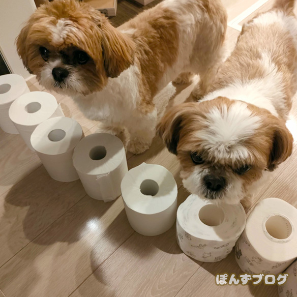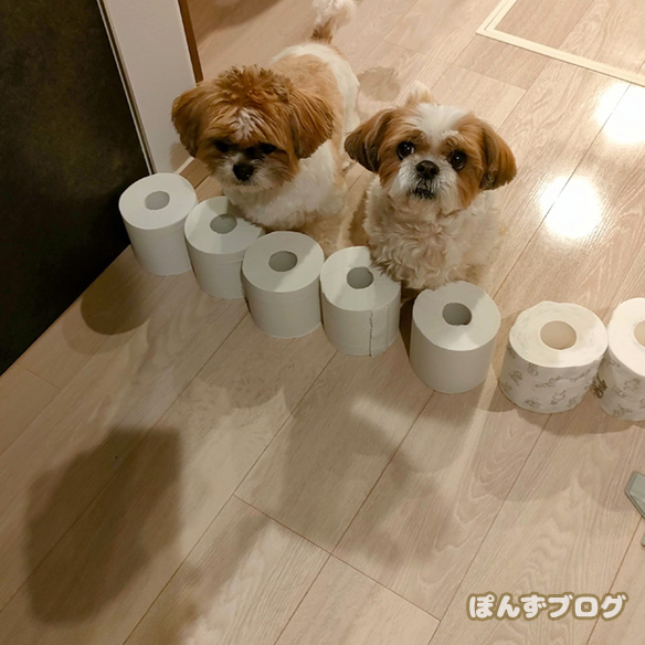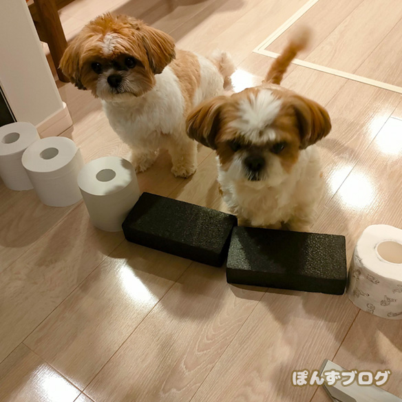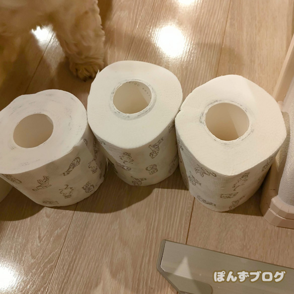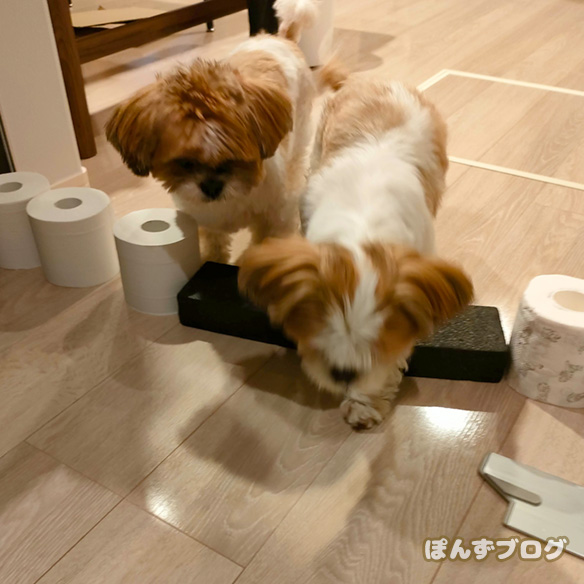 SNSで、他のわんこがトイレットペーパーを元気よく飛び越えている動画を見まして・・・
