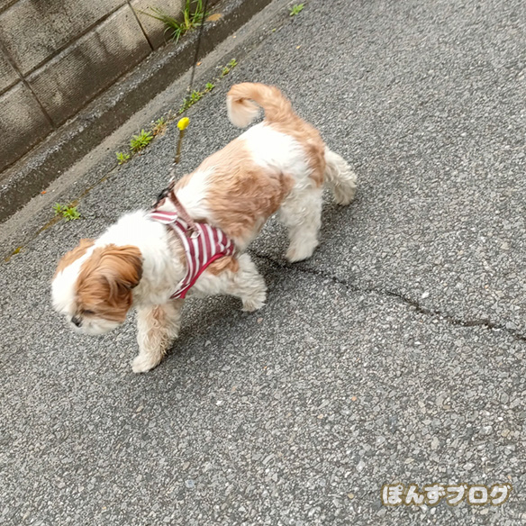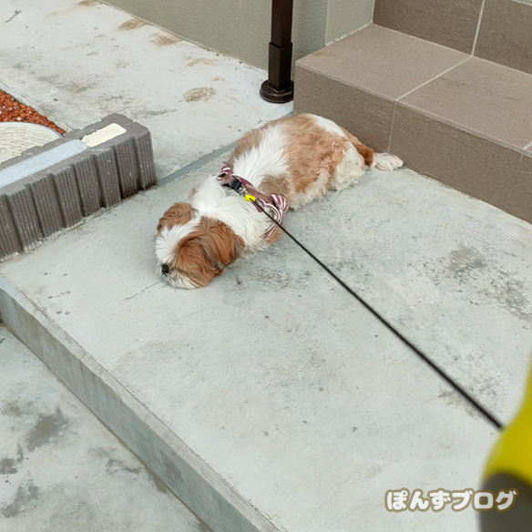 しぶしぶながら、なんとか歩いてくれたぽんず。