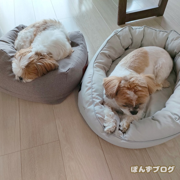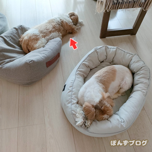 ぽんずが『ぐてー』っと行き倒れポーズに。