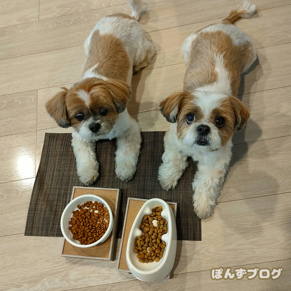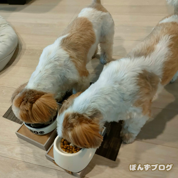 ご飯の時はさらに若返り目が輝く、ぽんず。