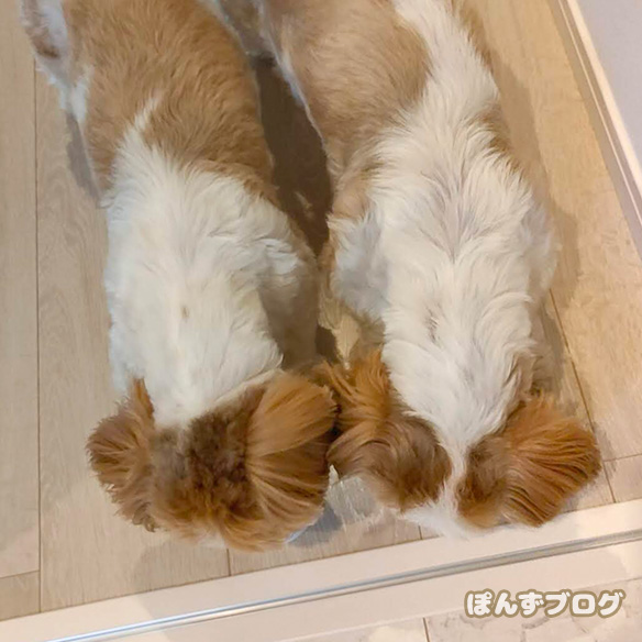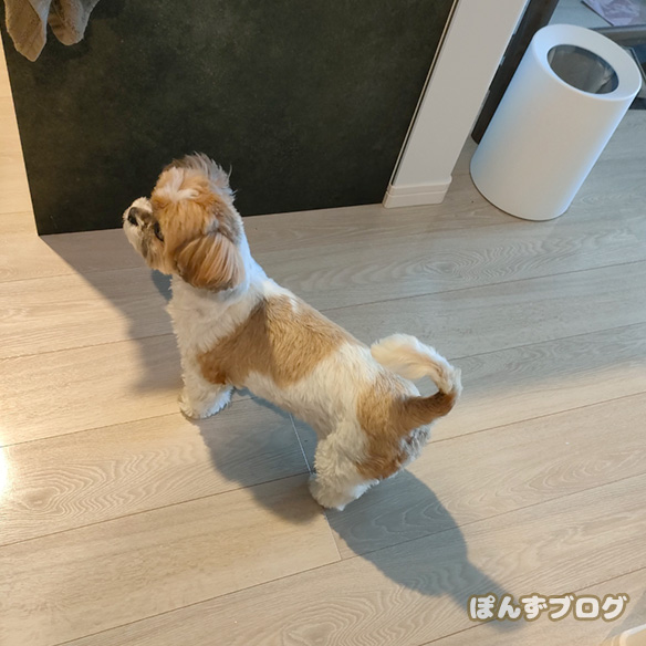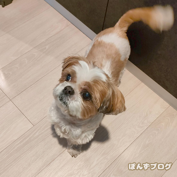 茹でている間、目を輝かせてしっぽ振りまくりの、ぽんず。