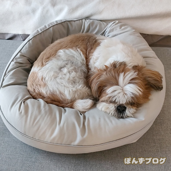 マイベッドで丸くなって、ぐてぇ~っとしている、ぽんず。