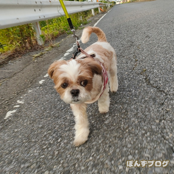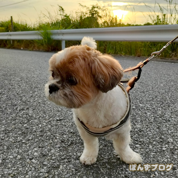 夏になると、ぽんずの散歩は大体こんな感じですね😅