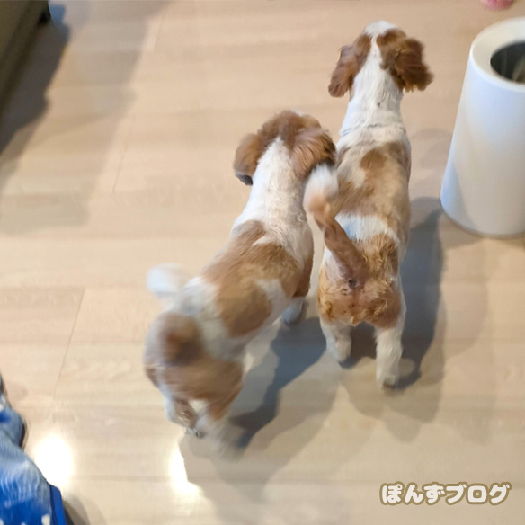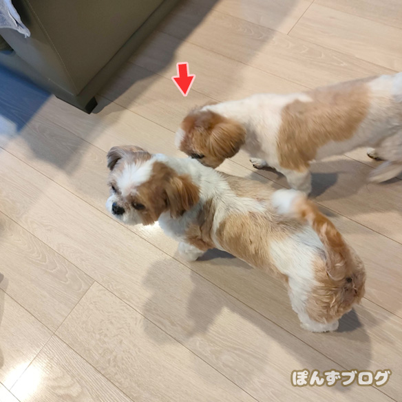 ぽんず母さんを一緒に迎えに行きたそうな目で見つめる、かぼす。