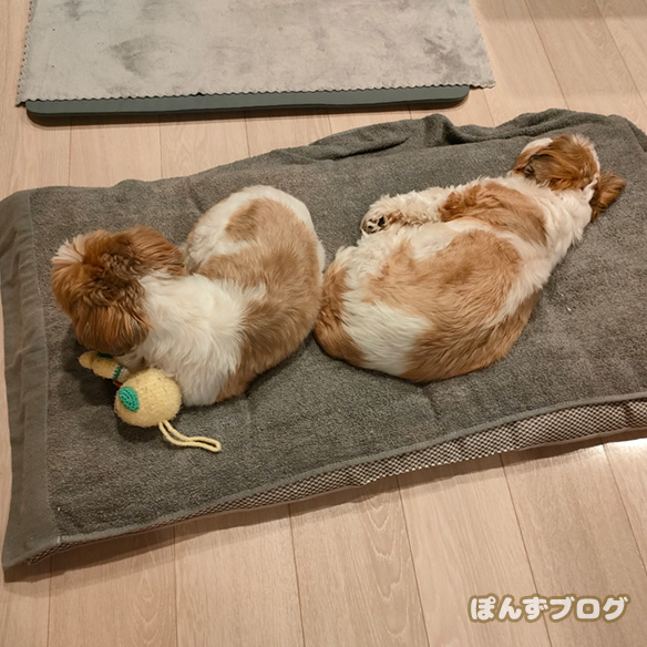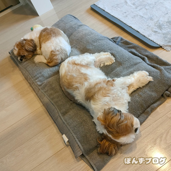 いつの間にかぽんず母さんと一緒の寝床へ。