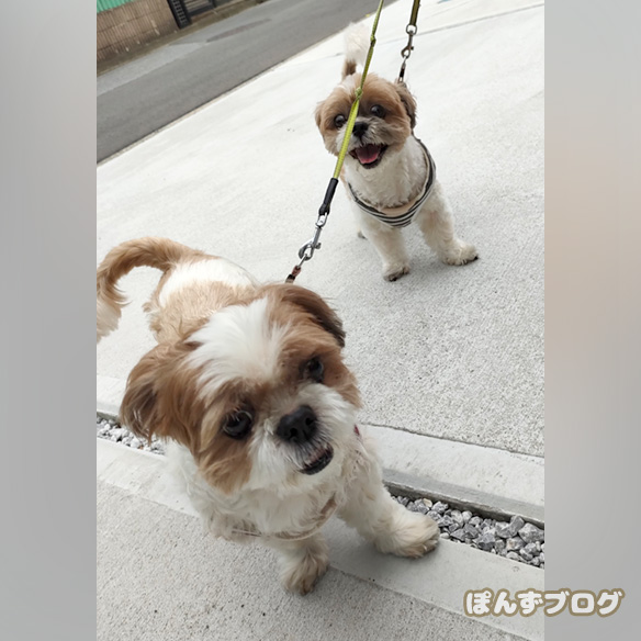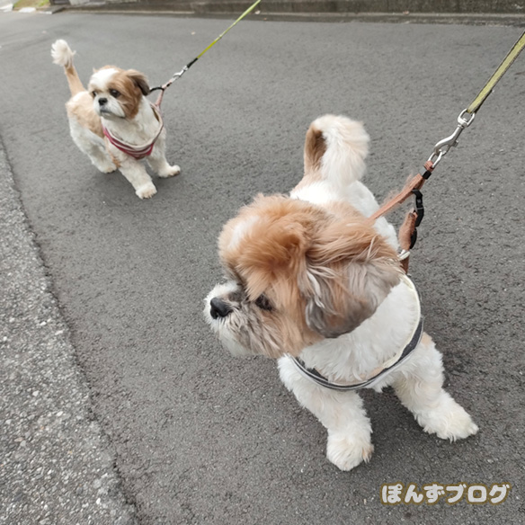 久しぶりにぽんずとかぼすで親子散歩に行けました。