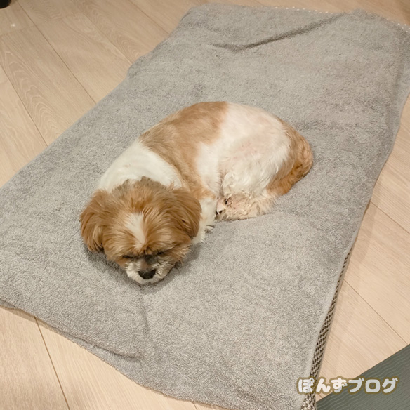 いつものように「もふぅ」っと寝ているぽんず。 ぽんずはこんな風に手足を縮め丸くなって寝ていることが多いのですが、そのせいか寝ていながら服が脱げてしまうことがあります。 ...