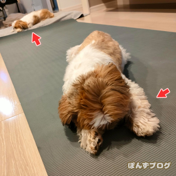 場所は違えど、同じポーズでぐて寝している、もふもふ親子。