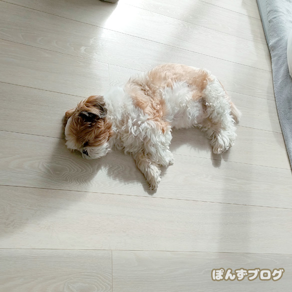 『こてーん』と気持ち良さそうに昼寝している、ぽんずです。