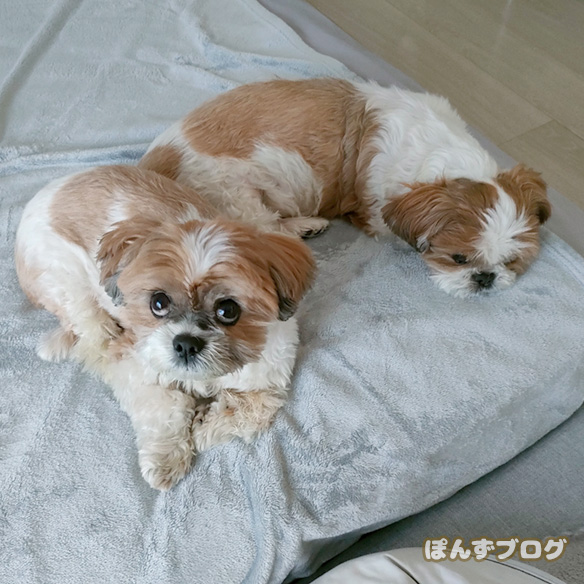 おしりくっつけて仲良ししている、ぽんかぼ。