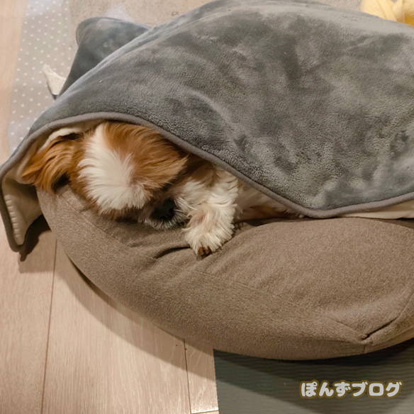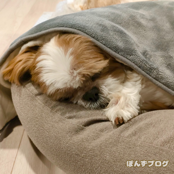 ぽんずもあったかくして寝ています。