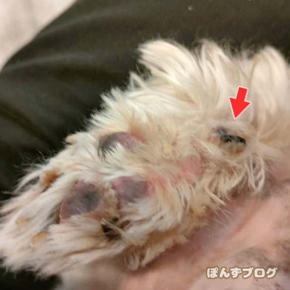 耳は綺麗になったけど、肝心の狼爪の方はなかなか汚れが落ちません。