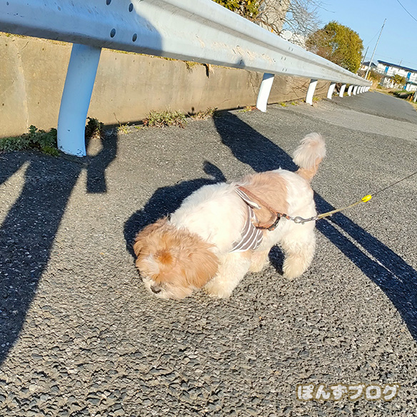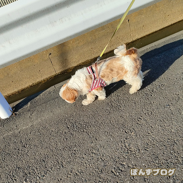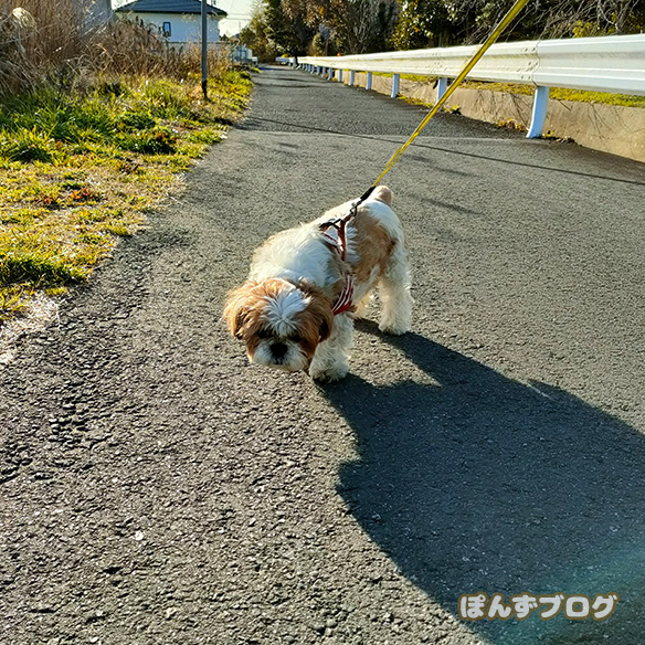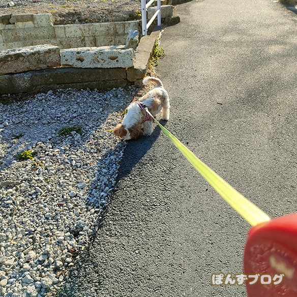 ぽんず、ひたすらに地面をくんくんしてばかりで