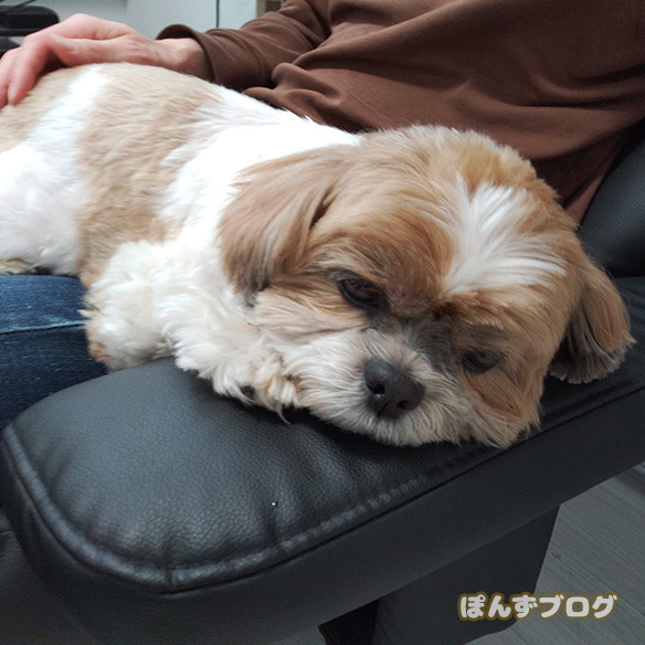 飼い主の膝上が常連になりつつある、かぼす。