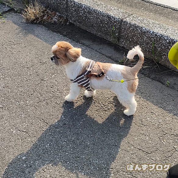 今日は気温も落ち着いて、まだ明るいうちに散歩に行けました。