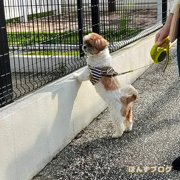 ドッグランのわんこに向かって吠えまくっていました 笑