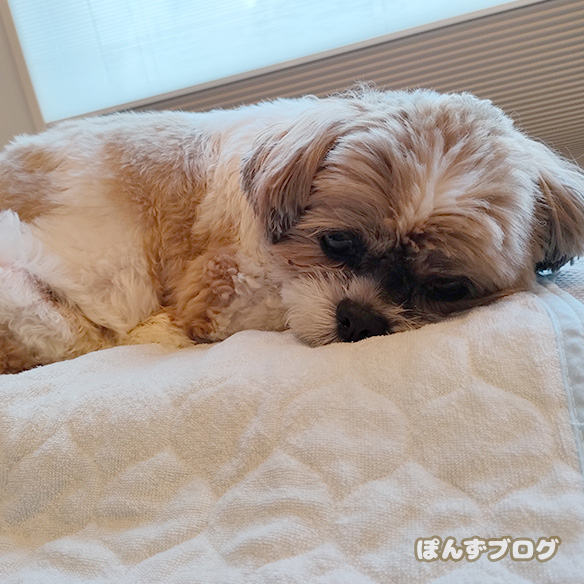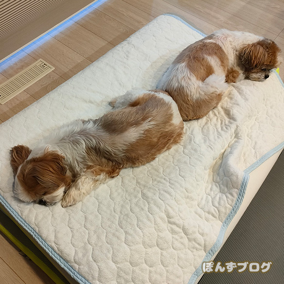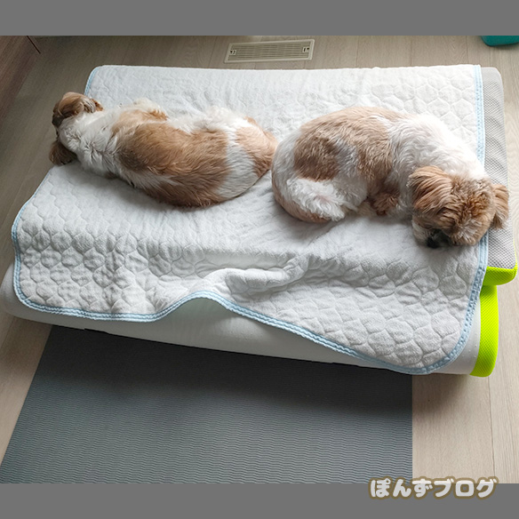 畳んである布団とかで寝る、ぽんずとかぼす。