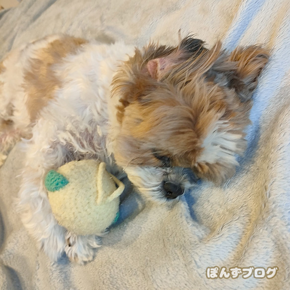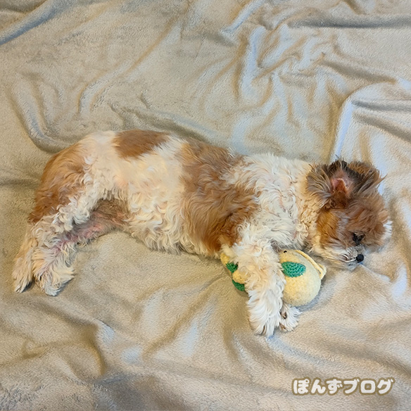 念のため散歩はお休みして、たっぷりもふ寝です。