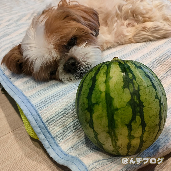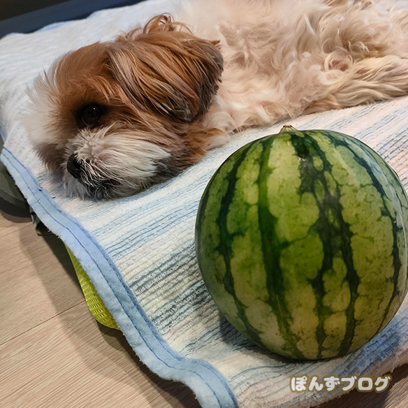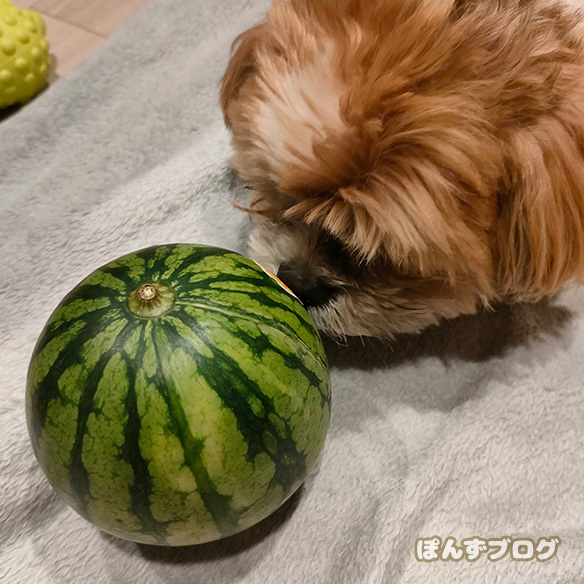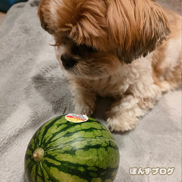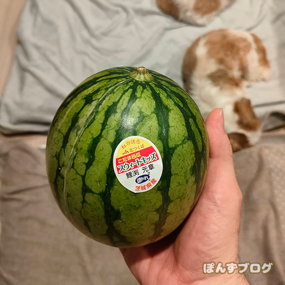 普通のスイカの半分もないくらいの大きさ。