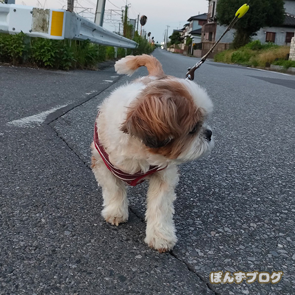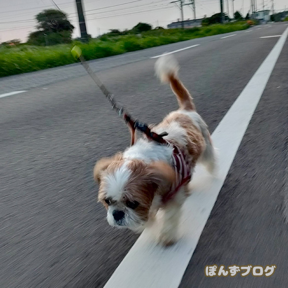 せっかく起きたので、ぽんずを散歩に。