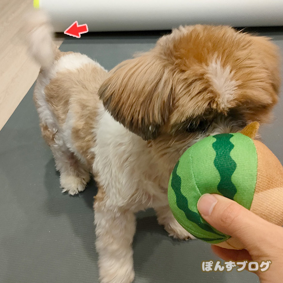 普段あまり振らないしっぽを小刻みに振って興奮しています。