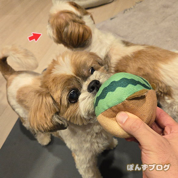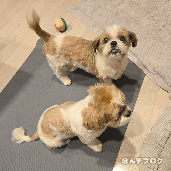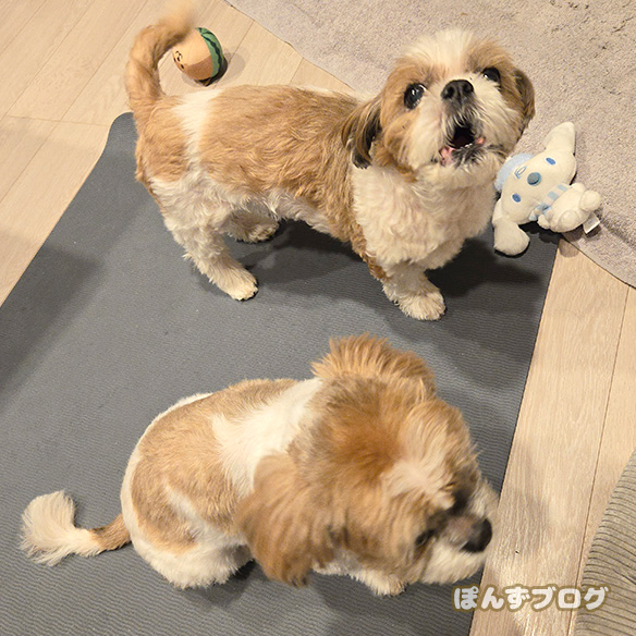 外を歩くには危険そうだったので、家でかぼすと遊びました。