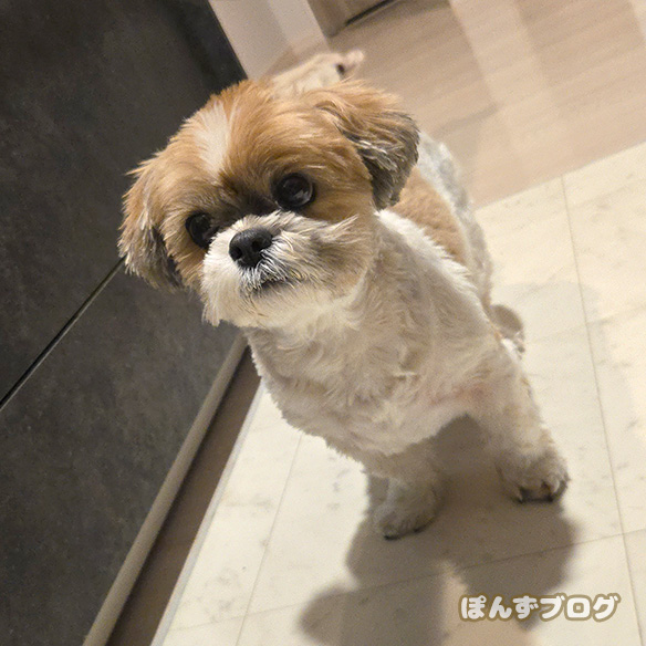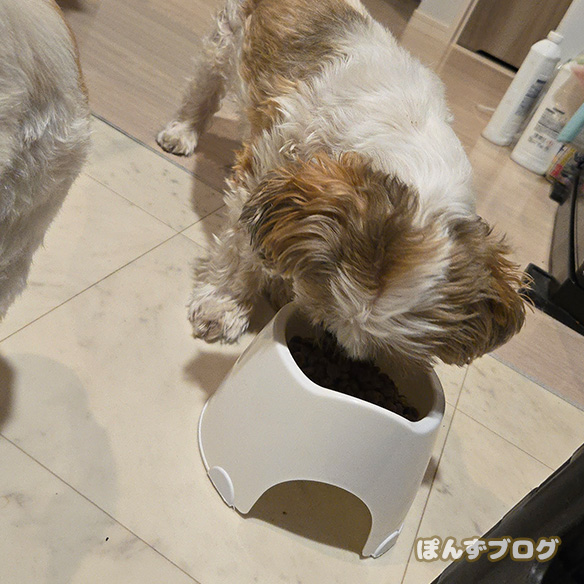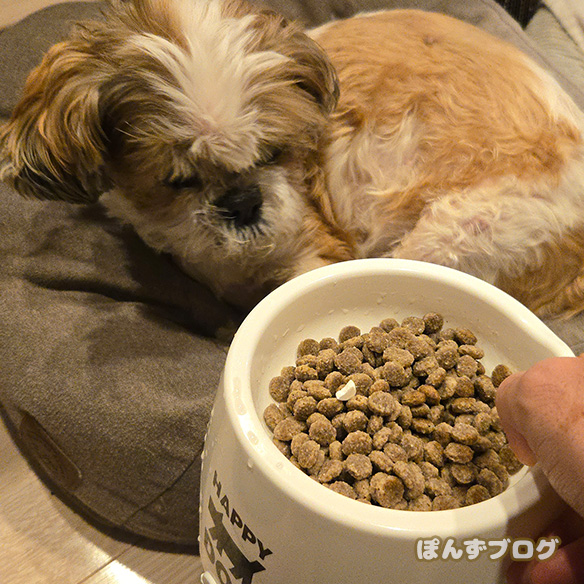 ふやかしたドッグフードを、ぽんずの元へ持っていくと・・・