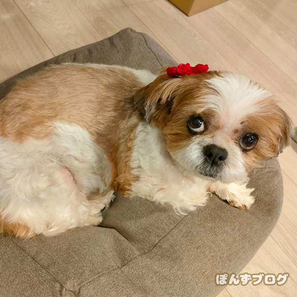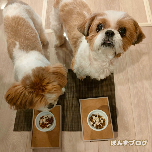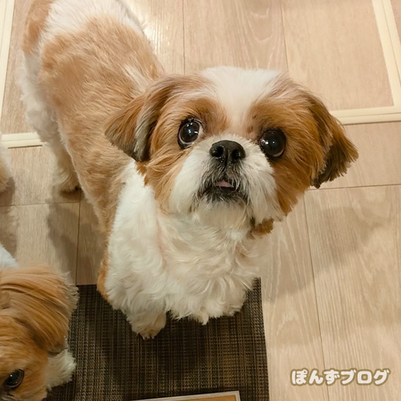 おやつを前にしたぽんず、