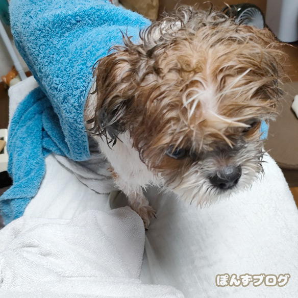 シーズーあるあるですが、シーズーって頭まで濡らすと